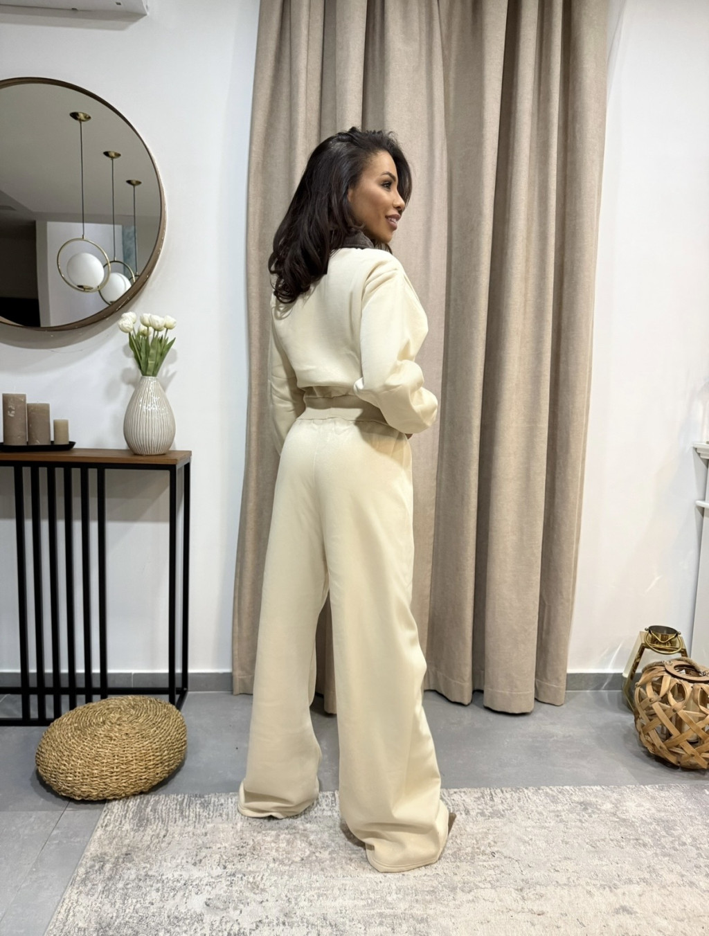 A Bézs overál barna nyakkal minimalista eleganciájával azonnal kitűnik a hétköznapi outfitek közül. A lágy bézs árnyalat nyugodt, visszafogott nőiességet sugároz, amelyet a barna gallér tesz igazán egyedivé és modernné. Ez a finom színkombináció a letisztult luxus érzetét kelti – tökéletes választás irodába, brunchra vagy akár egy stílusos délutáni programra.