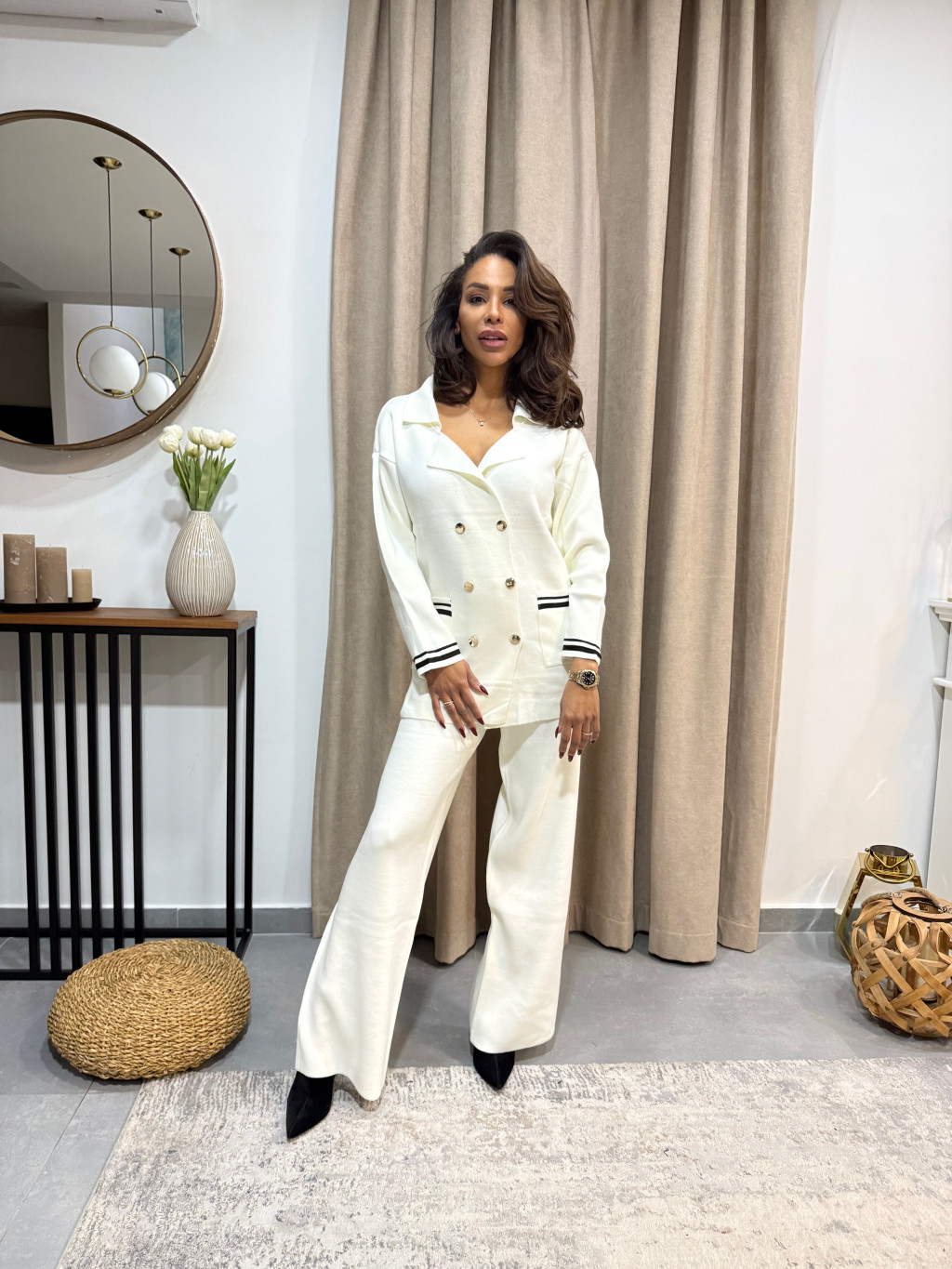 Letisztult elegancia modern csavarral! A fehér–fekete elegáns szett tökéletes választás azoknak, akik stílusosan és magabiztosan szeretnének megjelenni bármilyen alkalmon. Kényelmes, nőies, időtlenül kifinomult.